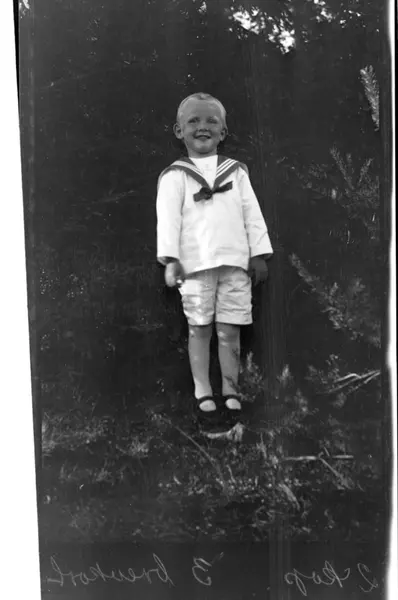 Julius Sundt, ca tre år, i matrosdress, Villa Knyggen. Fotografert 1920.