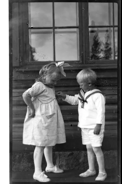 Julius Sundt står sammen med en ukjent jente, Villa Knyggen. Fotografert 1920.
