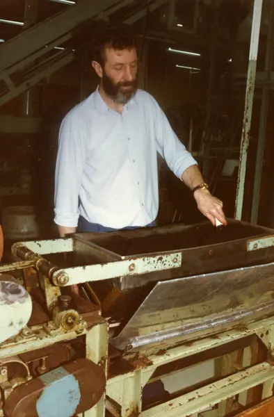 Siste dag for produksjon av ovale pappesker for snus på (antatt) Tiedemanns eskefabrikk på Bergensgate.