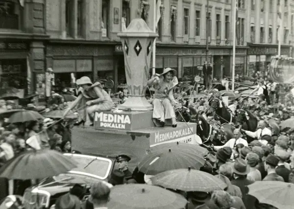 Opptog med reklame for Medina sigaretter. Antatt under Oslodagen 1/6 1935.