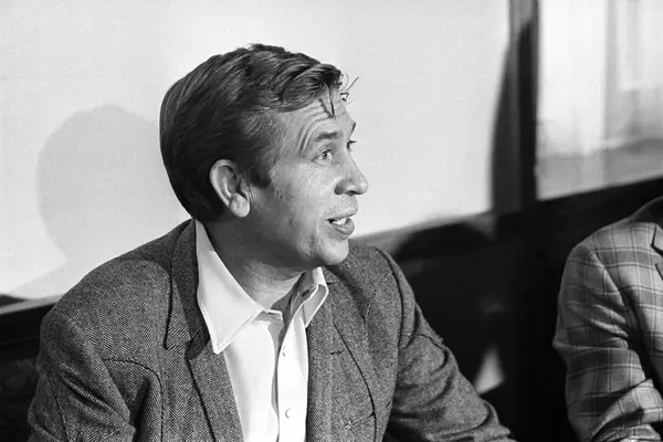 Buck Owens og hans band The Buckaroos gjester Oslo. Pressekonferanse på Hotel Continental. Portrett av Buck.