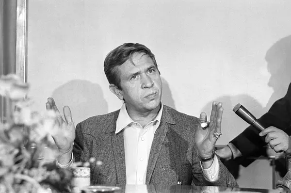 Buck Owens og hans band The Buckaroos gjester Oslo. Pressekonferanse på Hotel Continental. Portrett av Buck.