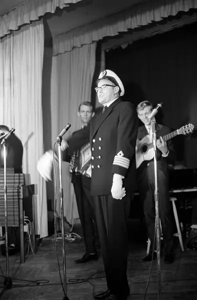 Dizzie Tunes skal på turné med revyen "Åh, så heldige vi er" sammen med Wenche Myhre og Ivar Medaas. Her er Medaas under generalprøven i Keysers gate i Oslo.