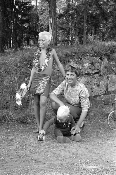 Familien Damman har kommet hjem etter å ha bodd sju måneder på øya Savali i Polynesia. Her er kona Ragnhild sammen med to av guttene, Rein og Jaran.