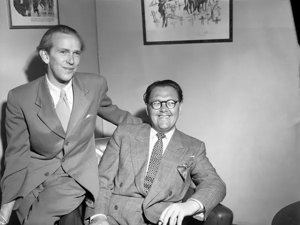 Komponist Finn Ludt til venstre har komponert en ny operette "Når kvinner ikke vil" som skal vises på Carl Johan Scene. Musikalsk leder er Kåre Siem, til høyre.