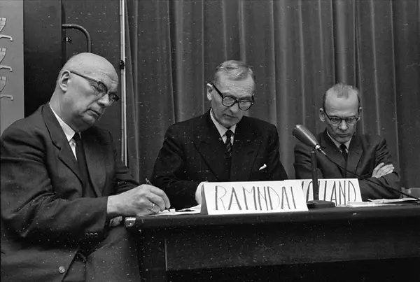 Promillediskusjon i Motorførernes Avholdsforbund. "Ingeniørenes hus", Oslo, 12.03.1963. Til venstre Lars Ramndal.