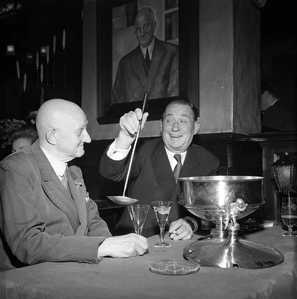 Karl Johans gate 41b, Oslo, 13.10.1960. Restaurant Blom. To menn ved bord.