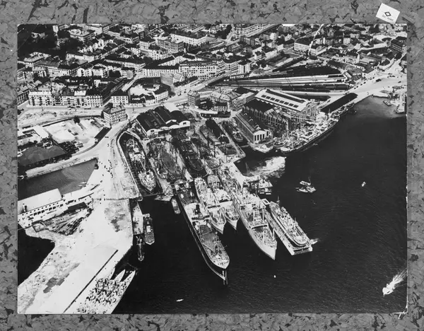 1939 - 1949 (Bildet viser bygninger som er erstattet av nybygg i 1949, og viser den store dokken som ble innviet i 1937Noen av bakbygningene som visers på bilderf fra 1937 er revet /utvidet, som indikerer at det er nærmere 1940-tallet.)