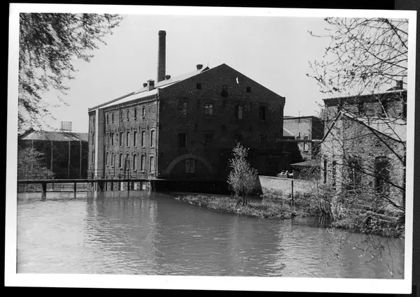 Klædefabrikken, først en del av Hjula Væveri, fra 1916 avdeling Frysja, del av DFU (De forenede ullvarefabrikker), fotografert mai 1951