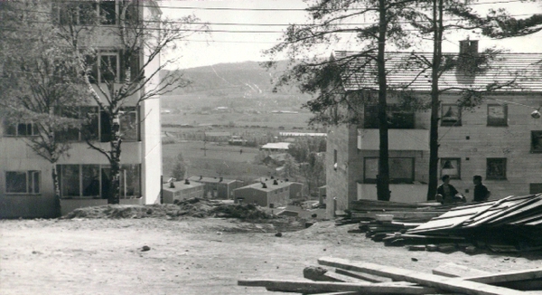Boligområde ved Veitvedt, i nærheten av Tonsenhagen og Linderudsletta, hvor Televerket i 1959 hadde 32 leiligheter til teletjenestemenn. I midten av foto skimtes noen av Selvaagbyggenen på Veitvedt.