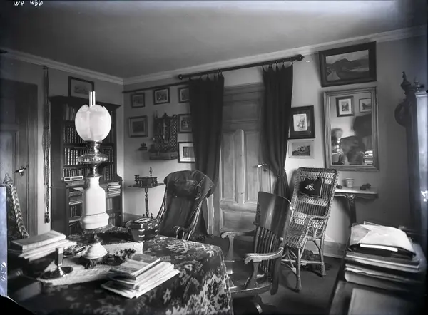 Skolebestyrer Lyches villa, værelse i annen etasje. Mann i speilet.