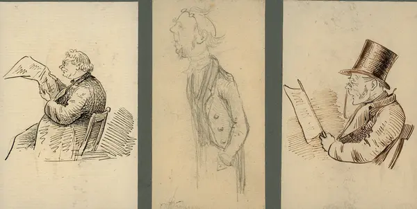 3 tegninger limt sammen - figurstudier av menn.