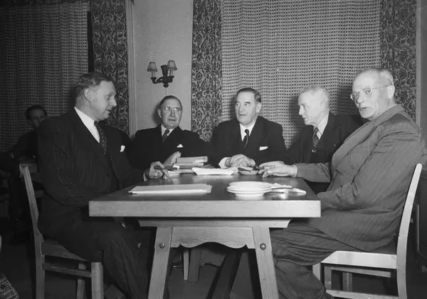 Telegrafbygningen, interiør, gruppe, menn, pionergruppa, 25 års kringkasting