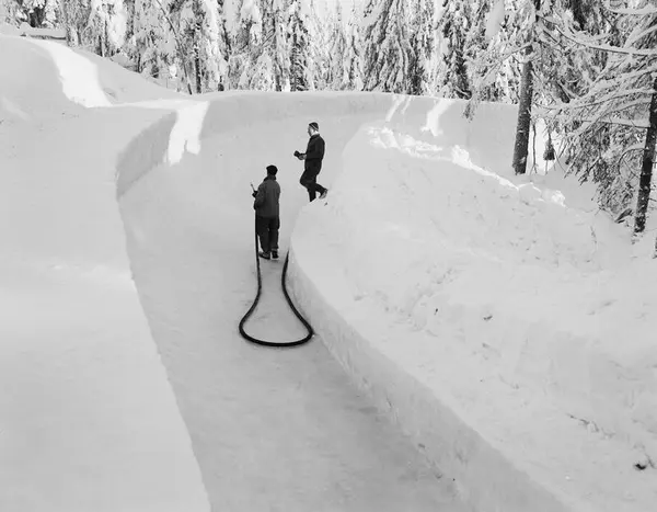 Bobsleighbanen lå på østsiden av Holmenkollen, i bratt og vanskelig terreng. To sveitsiske bygningsingeniører, bobføreren Heinz Cattani og Emil Ingold, stakk ut banetraséen i terrenget. Selve bobbanen ble bygget under ledelse av Sigurd Lund og Carl Vendelboe i 1949 og 1950.
