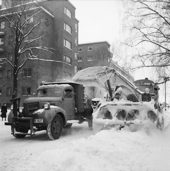 Oslo kommunes maskinpark, snøfreser, lastebil, snørydding, boligblokker