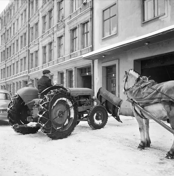 Oslo kommunes maskinpark, traktor, hest, snørydding, bygårder