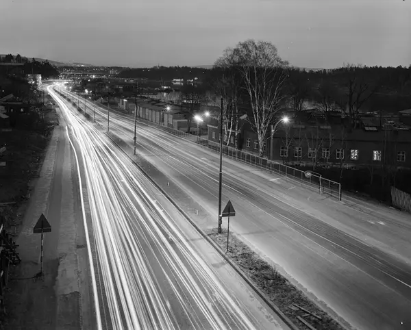 vei, biler, trafikk, gatebelysning, trelastlager, fjord, nattemørke