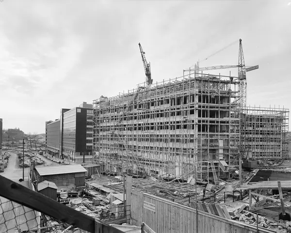 gateløp, kontorbygninger, byggetomt, byggevirksomhet, parkeringsplass, biler