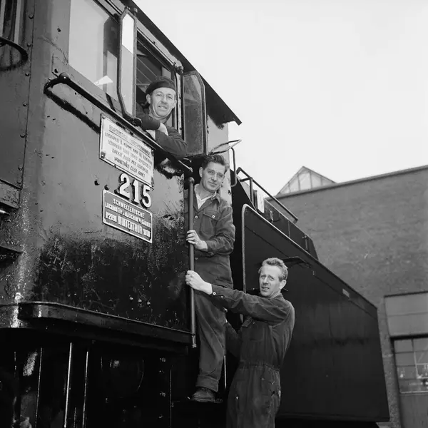 Grorud jernbaneverksted, menn, arbeidere, damplokomotiv 215