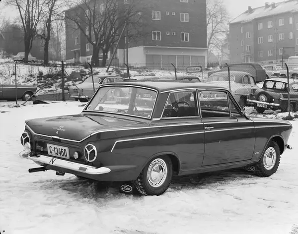 Holtans bilforretning, bil, Ford Cortina, boligblokker