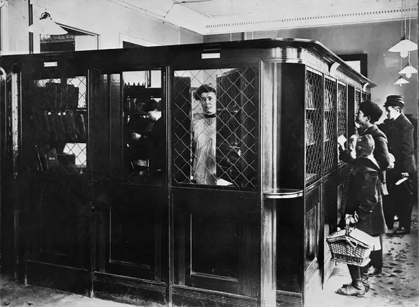 Det åpnes i 1900 en egen ungdomsavdeling i Kristian IVs gate. Bøkene var plassert i bur og lånerne måtte dytte på bøkene de ønsket å låne. Inne i buret plukket bibliotekarene frem bøkene og ga dem til lånerne. Buret ble avskaffet høsten 1919. På bildet sees Frøken Buhre(!) i buret.