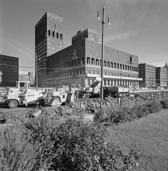 Asfaltering av Rådhusplassen.