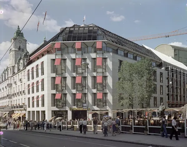 Stortings plass med Grand Hotels nybygg.