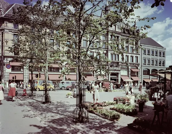 torg, torghandel, blomster, mennesker, forretningsgårder, Christiania Glasmagasin