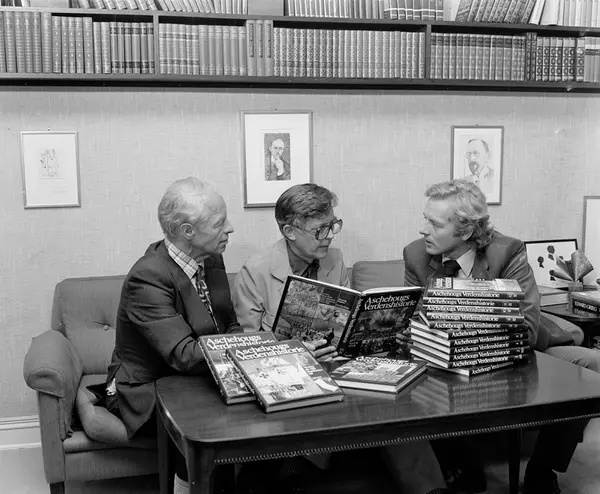 Aschehoug forlag, interiør, menn, Aschehougs verdenshistorie