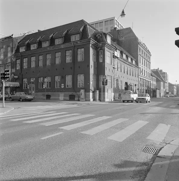 gatekryss, forretningsgårder, Stattholdergården (Calmeyergården), mennesker, biler