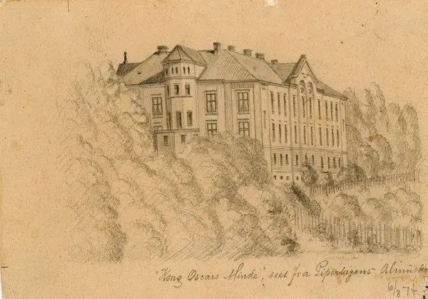 "Kong Oscars Minde", seet fra Pipervigens Almueskole. / 6/8 74