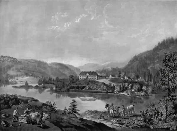 arkitektur, gård, arbeide, okse, kjerre, vann