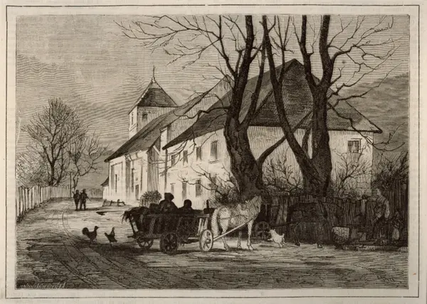 Trykt under motivet: Parti fra Oslo; Kirken og Hospitalet. (Efter Tegning af G. Munthe.)