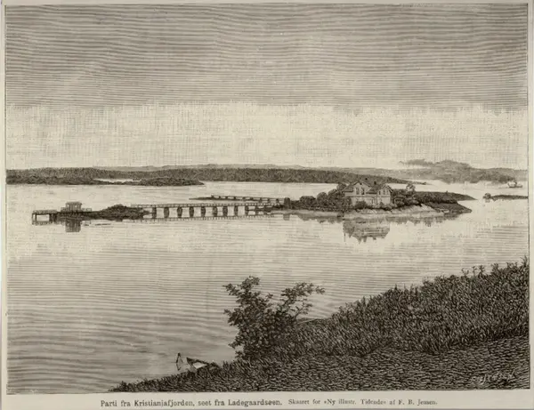 Parti fra Kristianiafjorden seet fra Ladegaardsøen. Skaaret for "Ny illustr. Tidende af F. B. Jensen."