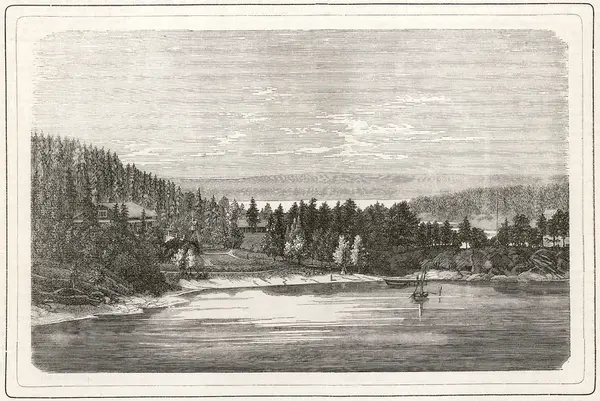 Advokat Dunkers Landsted i Skinnerbugten. (Efter Photographi af W. Cappelen)