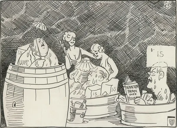 Karikatur av Halfdan Christensen, Harald Otto og K. A. Andersen (direktør Dovrehallen)