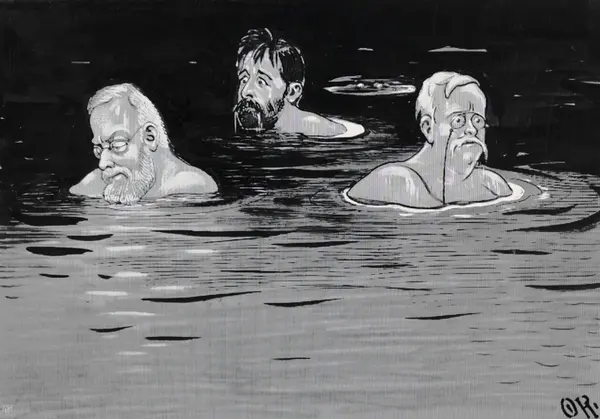 Karikatur av A) W. Konow B) A. Eriksen C) J. Casteberg