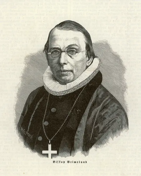 Brystbilde, kroppen 1/4 vesntre profil, hodet en face med liten dreining til venstre. Glatt hår skilt på venstre side, glattbarbert. Briller med smal innfatning. Stor munn med brede lepper. Iført ornat med bispekorset om halsen.