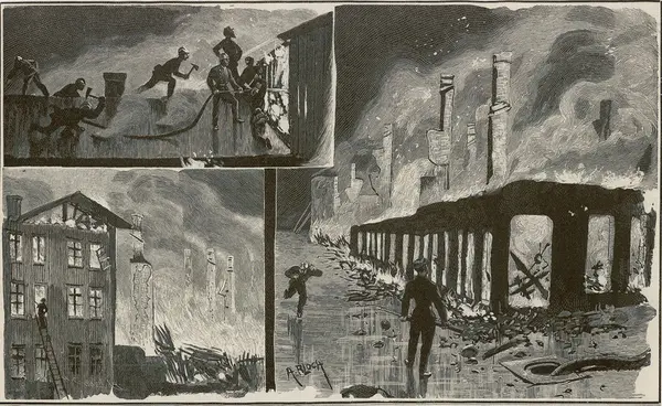 Branden paa Vaalerengen den 8de Septbr. 1887. Efter Tegning af A. Bloch
