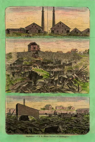 teglverk, teglovn, jordskred, landskap, trær, bygninger