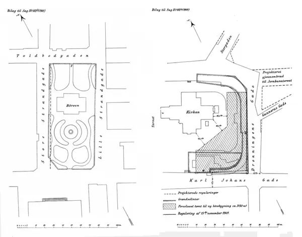 Toldbodgaden - Rådhusgaden - Store Strandgade - Lille Strandgade. Randskravert: Børshaven