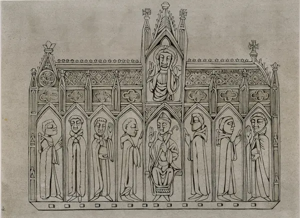 kirke, biskop, kannikker, arkitekttegning, detaljer