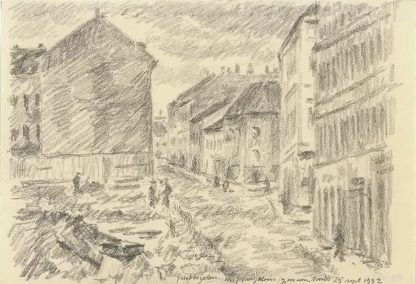 Grubbegaten. Skippergatens gjennembrudd 25 sept. 1932. /(på baksiden:) Skippergatens gjennembrudd sett fra Gunnerusgt.