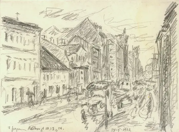 Rådhusgt. 10.12.14. 24-5-1932. (på baksiden:) Rådhusgt. sett fra hjörnet av Dronningensgt.