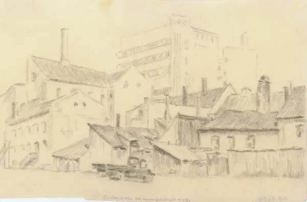 Grönlands torv. Bak husene Grönland. 8-4-1936. (på baksiden:) Grönland 9. 11 og 13.