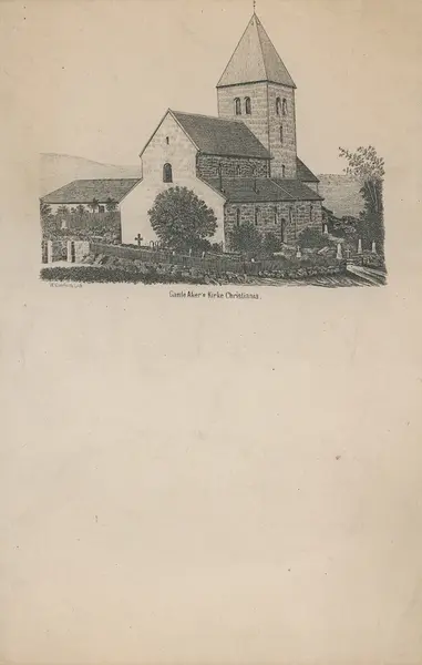 arkitektur, kirke, brevark, vignett på brevark (sannsynligvis)