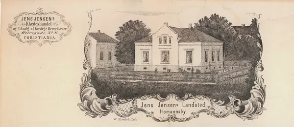JENS JENSENs Klædeshandel og Udsalg af færdige Herreklæder Østregade No 13 Christiania.