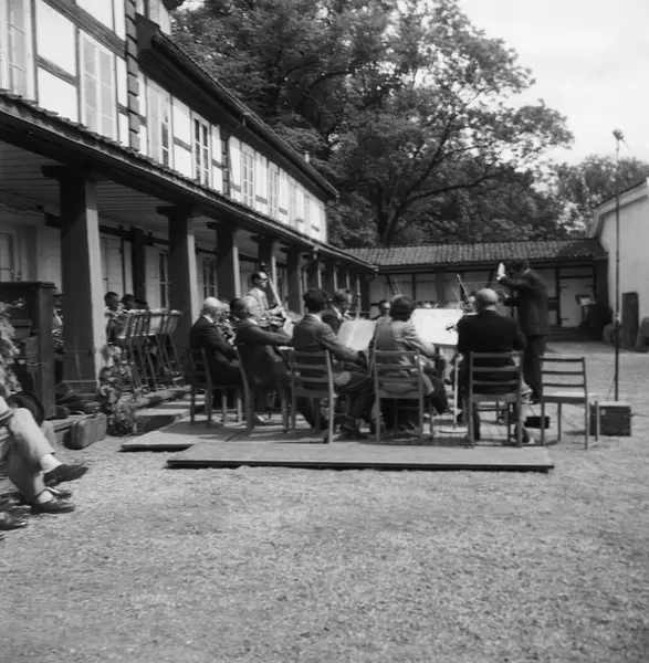 Parkkonsert på Bymuseet. Kommunen engasjerte Nationaltheatrets orkester for sommeren, og under navnet Oslo byorkester spilte de lettere klassisk musikk og underholdningsmusikk.