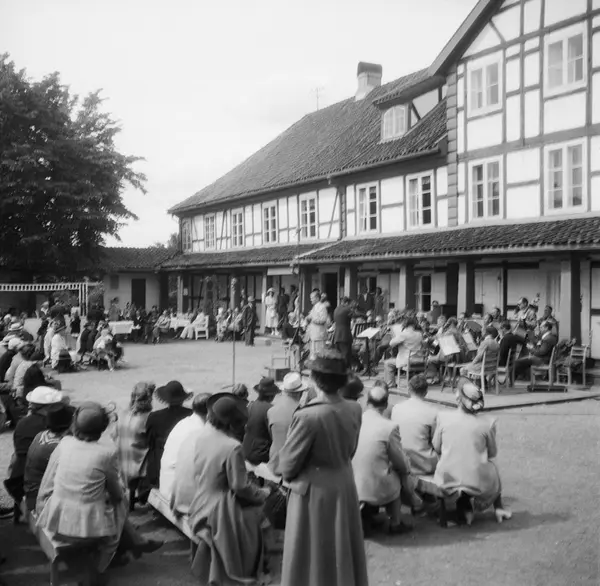 Parkkonsert på Bymuseet. Kommunen engasjerte Nationaltheatrets orkester for sommeren, og under navnet Oslo byorkester spilte de lettere klassisk musikk og underholdningsmusikk.