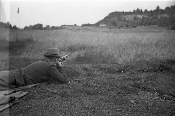 Skytterløkken/Skyttervollen, skytebane på østre del av Lindøya. Velhuset til Lindøya Vel kan ses til venstre i bildet. Klubben Skarpskytten hadde tilhold her.